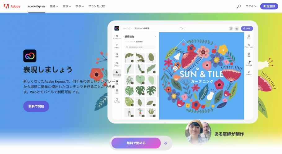 「Adobe Express」の詳細確認・アカウント登録は下記のページから可能です。
