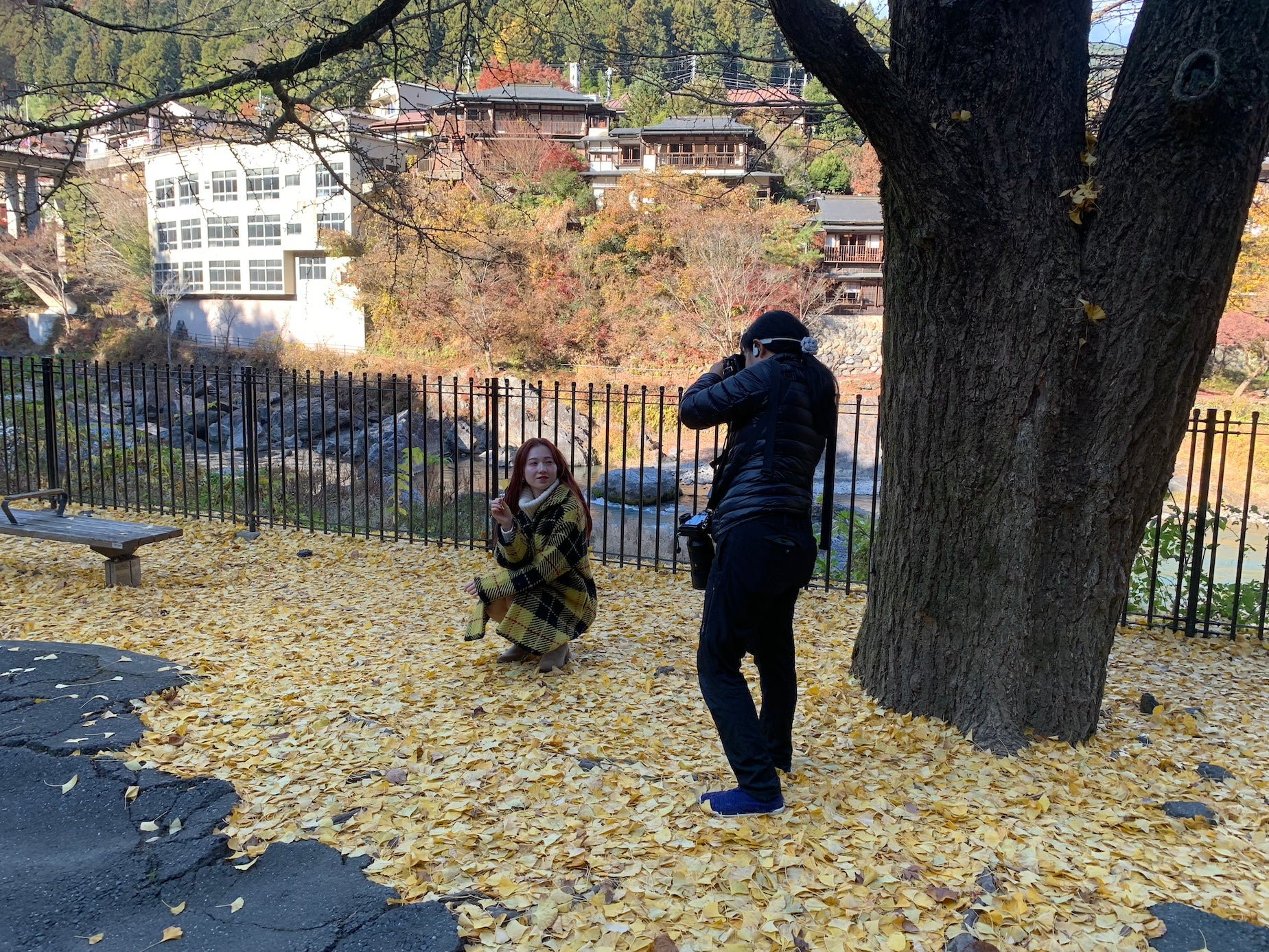 ▼イチョウの絨毯を背景に、こんな撮影ができるかも▼